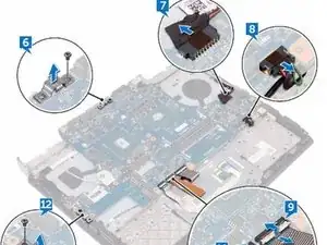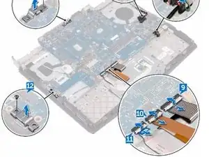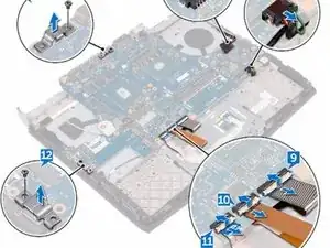 Удалите одиннадцать винтов (M2.5x6L), которые крепят основание компьютера к узлу подставки для ладоней.