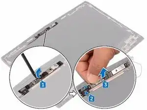Совместите отверстия для винтов на петлях дисплея с отверстиями для винтов на узле подставки для кистей.