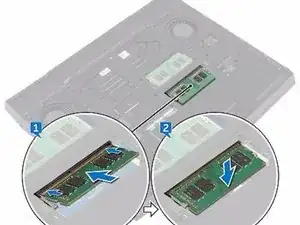 Сдвиньте и извлеките модуль памяти из слота для модуля памяти.