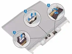 Откройте защёлку и отсоедините кабель тачпада от системной платы.