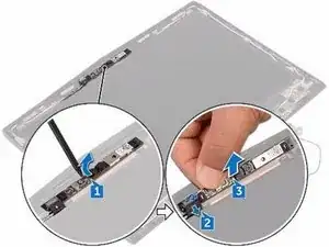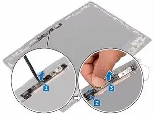 Используя пластиковый медиатор, подденьте модуль камеры от задней крышки дисплея и антенной сборки.