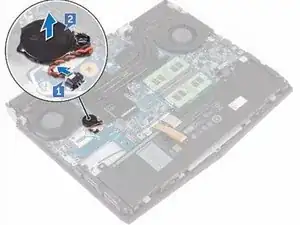 Используя пластиковую лопатку, отсоедините кабель аккумулятора от системной платы.