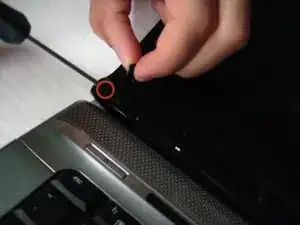 Снимите резиновые крышки винтов с экрана LCD. Они закрывают винты. Заглушки на верхней части экрана выскакивают, но нижние крышки требуют отвертки для удаления.