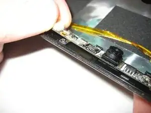Будьте осторожны, чтобы не сломать пластиковый корпус! Он хрупкий и все еще прикреплен к нижней части экрана.