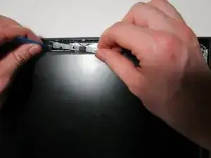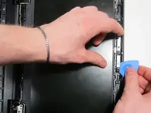 Снимите рамку экрана с ноутбука.