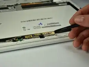 Используя прочную лопатку, отодвиньте камеру от основания экрана.