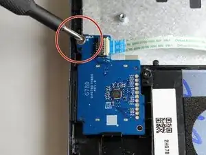 Удалите один серебристый винт 4.3 мм с помощью отвертки Phillips #0.