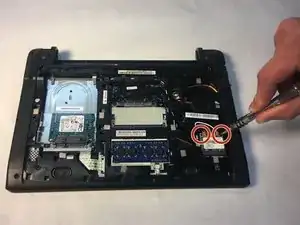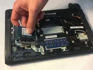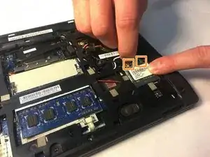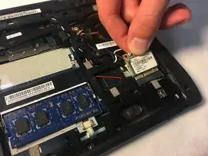 Удалите два винта Phillips #00 длиной 3 мм, расположенных на Wi‑Fi‑карте.