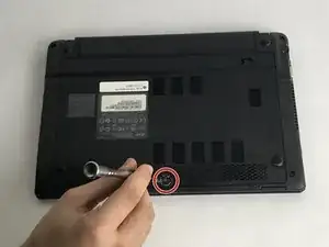 Удалите винт Phillips #00 длиной 6 мм, крепящий заднюю крышку.
