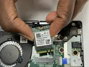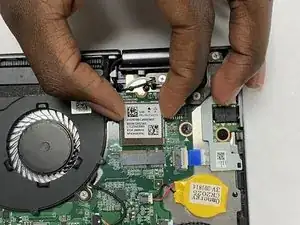 В верхнем правом углу системы вы найдёте карту беспроводной сети. Удалите винт Phillips #00 длиной 3.0 мм.