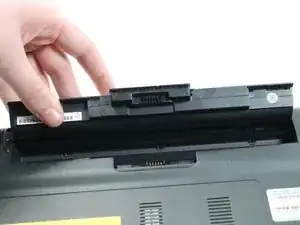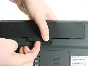Поднимите батарею вверх и извлеките её из ноутбука.