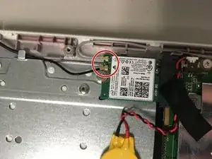 Отсоедините два провода, подключенные к карте Wi-Fi, аккуратно потянув их вверх.