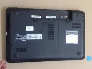 Используйте пластиковый инструмент для отделения нижней части корпуса от ноутбука.