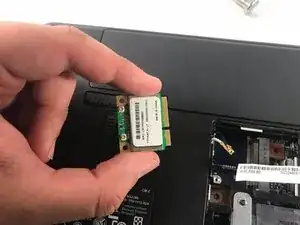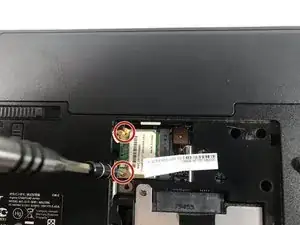 Удалите два винта Phillips #0 длиной 3 мм, крепящих карту WiFi.