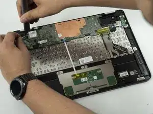 Используйте отвертку Phillips #0, чтобы выкрутить фиксирующий винт длиной 6 мм, удерживающий карту Wi‑Fi, затем аккуратно извлеките карту из ноутбука.