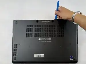 Используйте инструмент для открывания, чтобы осторожно приподнять крышку основания с компьютера.