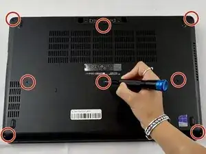 Используйте отвертку Phillips #000, чтобы удалить восемь винтов длиной 6,5 мм с крышки основания.