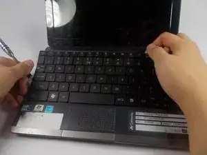 Вставьте лопатку под клавиатуру и проведите ею вдоль всей длины клавиатуры.