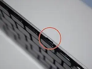 Найдите пять (5) зажимов в верхней части клавиатуры, которые удерживают её на месте