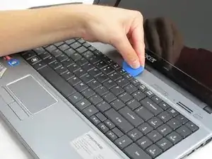 Вставьте открывалку между верхним левым углом клавиатуры и корпусом ноутбука.