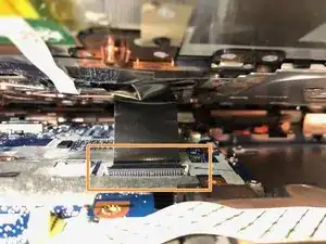 Отсоедините большой чёрный шлейф вблизи середины устройства. Осторожно потяните шлейф на себя.