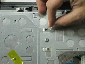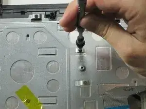 Удалите жёлтую ленту, затем выкрутите три винта Phillips #00, 1.4 x 2 мм, отвёрткой Phillips #00.