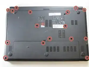 Удалите 16 винтов Phillips #0, 2.5 x 8 мм, с задней панели.