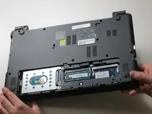 Переверните ноутбук так, чтобы задняя панель была направлена вверх.