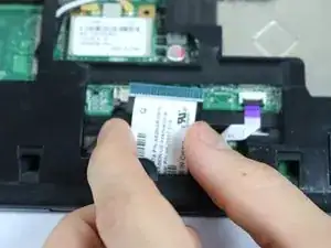 Поднимите чёрные фиксаторы разъёмов тачпада в верхнее положение.