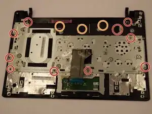 Найдите десять винтов Phillips длиной 6 мм, которые крепят клавиатуру к корпусу ноутбука, и удалите их отвёрткой Phillips #0.