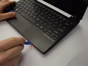 Сильно проведите лопаткой по всему периметру ноутбука, чтобы отжать клавиатуру от нижней части корпуса.