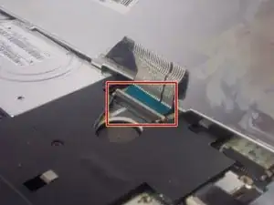 С помощью лопатки аккуратно нажмите вкладку на разъёме вперёд, затем вытяните кабель.