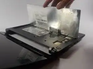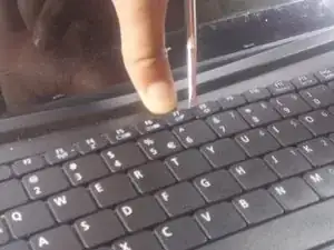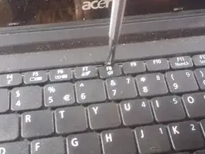 С помощью пластикового инструмента для разгона или лопатки аккуратно поднимите клавиатуру и сдвиньте её из посадочного места.