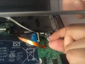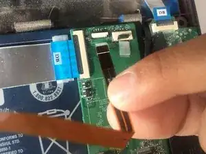 Используйте ноготь, чтобы поднять маленький фиксирующий клапан каждого разъема с нулевым усилием вставки, а затем аккуратно извлеките каждый кабель по одному.