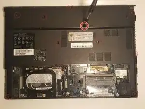 Удалите одиннадцать винтов, крепящих заднюю панель к ноутбуку, с помощью биту отвертки Philips J0.