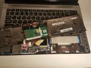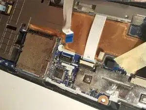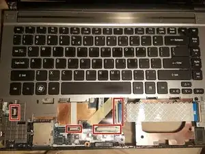 Затем отключите 4 проводных шлейфа клавиатуры от материнской платы, как мы сделали с нижней передней панелью сенсорной панели.