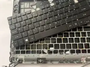 Клавиатура является основным компонентом ввода в ноутбуке: с её помощью вводят данные и управляют другими компонентами, такими как яркость экрана и громкость динамика. Клавиатура состоит из рамки — верхней части с клавишами, которую мы видим, и самой клавиатуры, расположенной под ней; обе части закреплены на металлической пластине.
