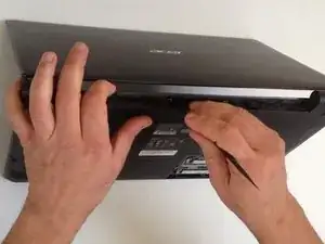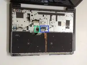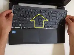 Клавиатура удерживается двумя фиксирующими зажимами под батареей. Используйте尖кий конец пластикового инструмента, чтобы освободить клавиатуру.