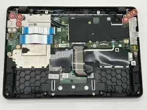 Выверните одиннадцать винтов 2,4 мм, крепящих заднюю панель и внутренние компоненты Chromebook, используя отвертку Phillips #1.
