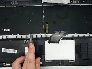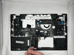 Используйте лопатку, чтобы поддеть клавиатуру вверх и отвести её от ноутбука.