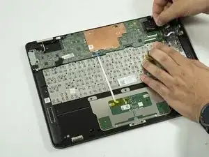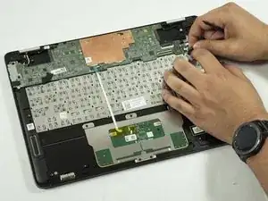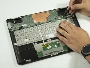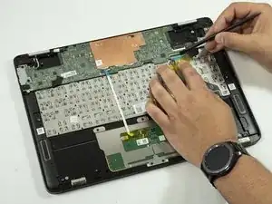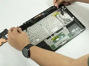 Снимите ленточный кабель тачпада.