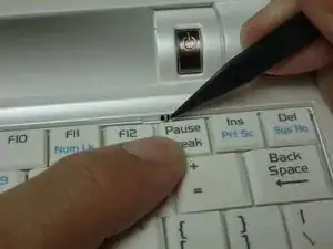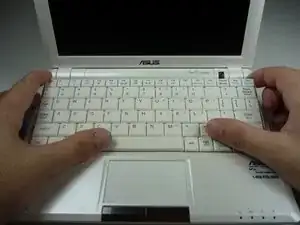 С помощью лопатки прижмите каждый металлический фиксатор, чтобы освободить клавиатуру.