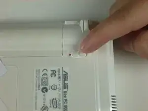 Вытяните батарею, удерживая левый фиксатор в разблокированном положении.