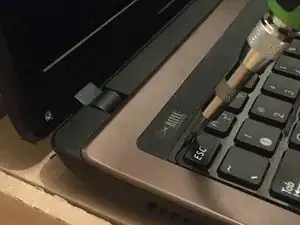 Клавиатура удерживается несколькими зажимами. Вставьте инструмент под углом, затем поверните его в противоположном направлении, чтобы освободить зажимы.