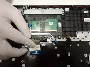 Осторожно отсоедините разъём, чтобы отключить два кабеля тачпада.