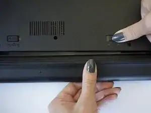 Сдвиньте правую защелку, чтобы разблокировать, затем одновременно сдвиньте левую защелку наружу, вытаскивая аккумулятор.