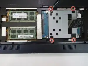 В отсеке для оперативной памяти и жесткого диска открутите четыре винта Philips размером 3 мм с помощью отвертки J1.
