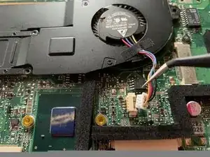 Используйте пинцет для точных работ, чтобы отключить кабели вентилятора.