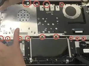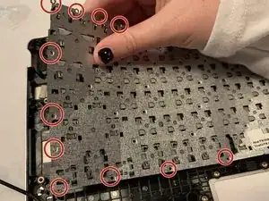 С помощью отвертки Phillips #0 выкрутите винты 50 мм, окружающие клавиатуру.
