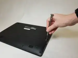Подденьте пластиковым инструментом для вскрытия край корпуса ноутбука.